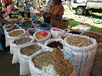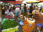 Außer Obst und Gemüse bietet der Markt auch Gewürze und viele andere Ware für den täglichen Bedarf .