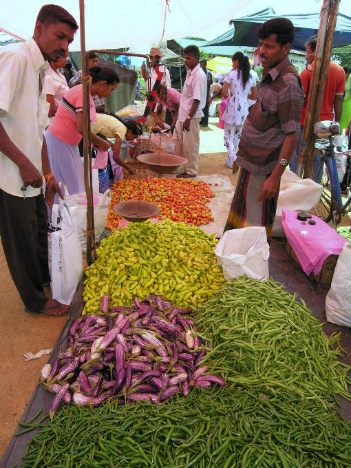 Auf dem Weg von Tissamaharana nach Ella , besuchen wir den bunten und großen Markt in Welawaya .