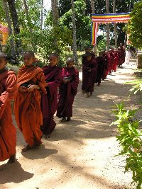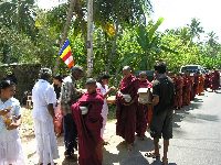 Morgens zogen die Moenche vom naheliegenden Tempel von Haus zu Haus