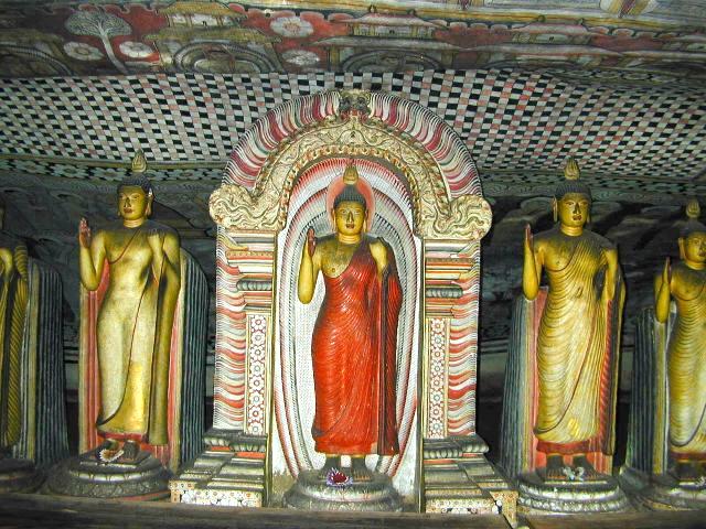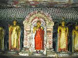 Zwischen dem 15. bis 18. Jahrhundert wurden die Felsenhöhlen weiter ausgebaut . Die 5 Höhlen liegen auf einem 100 Meter hohen Felsen , von wo man einen herrlichen Ausblick auf das Umland hat . In einer Höhle befindet sich ein 14 m langer, aus Fels gehauener liegender Buddha . Die anderen 4 Höhlen zeigen Steingravierungen und Fresken mit leuchtenden Farben , welche das Leben Buddhas zeigen. In der schönsten und grössten Höhle stehen etwa 150 lebensgrosse Statuen von Gottheiten . In diesen Felsenhöhlen fand König "Valagam Bahu" im 2. Jahrhundert v. Chr.14 Jahre lang Zuflucht , während die Hauptstadt Anuradhapura von den Indern besetzt war. Nach Rückeroberung der Hauptstadt wurden die Höhlen zu herrlichen Felsentempel. .