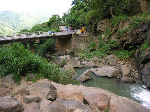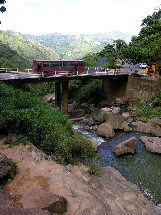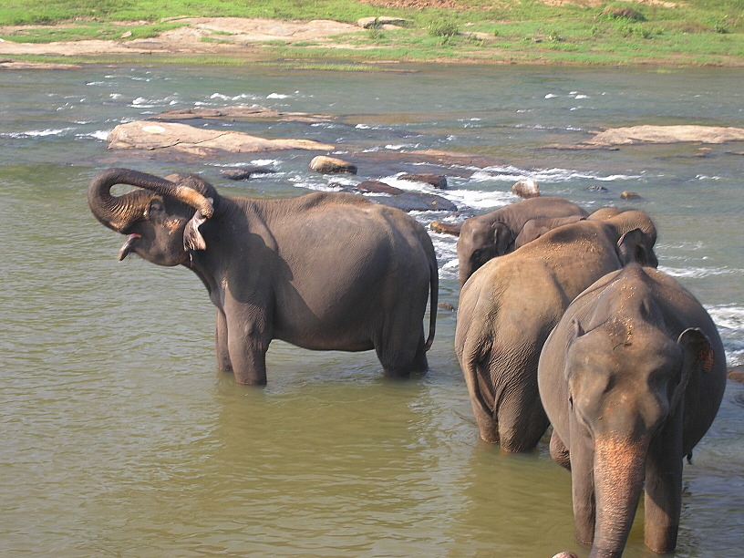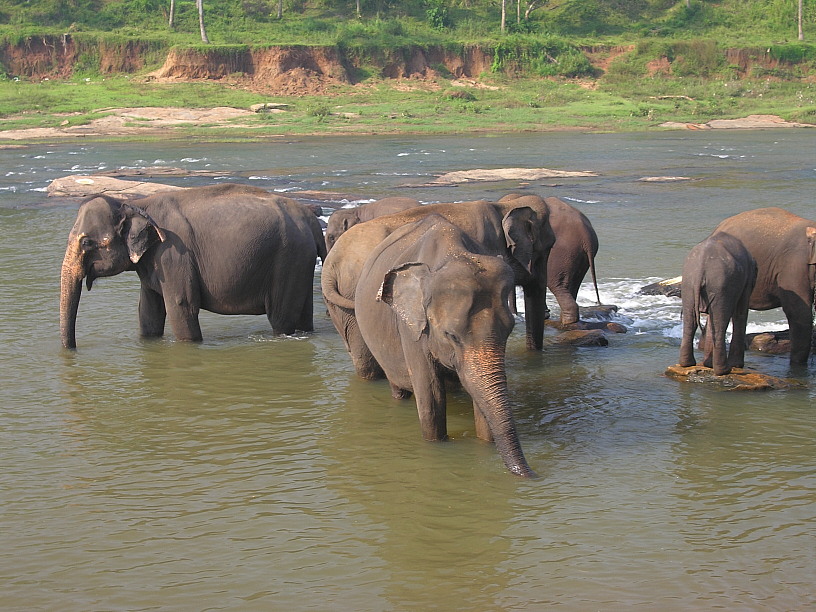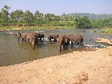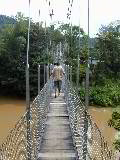 und den von Bambus gesäumten Riversite Drive am Mahaweli Fluss. Auf der Hängebrücke über den Mahaweli Fluss hat man einen sehr schönen Ausblick. An drei Seiten begrenzt der Mahaweli Fluss den botanischen Garten . Der Fluss ist mit seinen 332 Km der längste Fluss Sri Lankas. Er entspringt im Hill Country , fliesst durch weite Teile der Insel und mündet bei Trincomalee ins Meer. Er wird von 40 Nebenflüssen gespeist . Klick hier fuer mehr Fotos