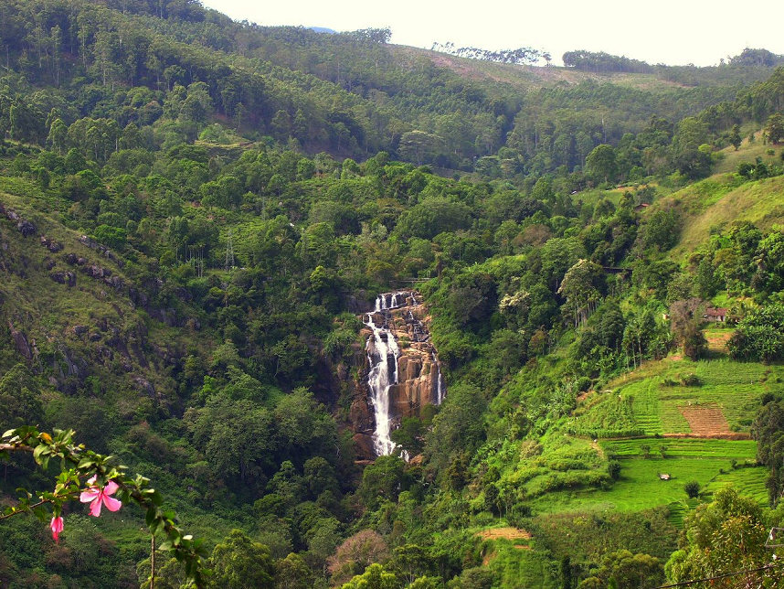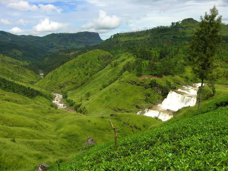 Die Resorts liegen hoch oben in den Teeplantagen mit atemberaubenden Blick auf die umliegenden Berge , das Tal und einem Wasserfall. |