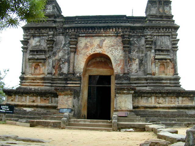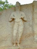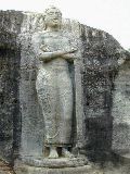 Die Buddhastatuen der "Gal Vihara" gehören wohl zu den bekanntesten Kunstwerken Polonnaruwas . Mitte des 12. Jahrhunderts , schlug man aus einem Granitfelsen , vier Statuen heraus , welche zu den Meisterwerken ceylonisischer Kunst gehören . Ein meditierender Buddha , ein stehender Buddha mit verschrenkten Armen , was selten zu sehen ist , und eine Statue , die gerade ins Nirwana hinüber tritt . Die vierte Statue ist in einer Höhle eingemeiselt . . Klick hier fuer mehr Fotos