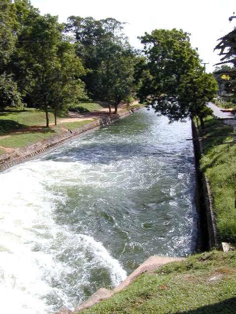 und den von Bambus gesäumten Riversite Drive am Mahaweli Fluss. Auf der Hängebrücke über den Mahaweli Fluss hat man einen sehr schönen Ausblick. An drei Seiten begrenzt der Mahaweli Fluss den botanischen Garten . Der Fluss ist mit seinen 332 Km der längste Fluss Sri Lankas. Er entspringt im Hill Country , fliesst durch weite Teile der Insel und mündet bei Trincomalee ins Meer. Er wird von 40 Nebenflüssen gespeist . Klick hier fuer mehr Fotos
