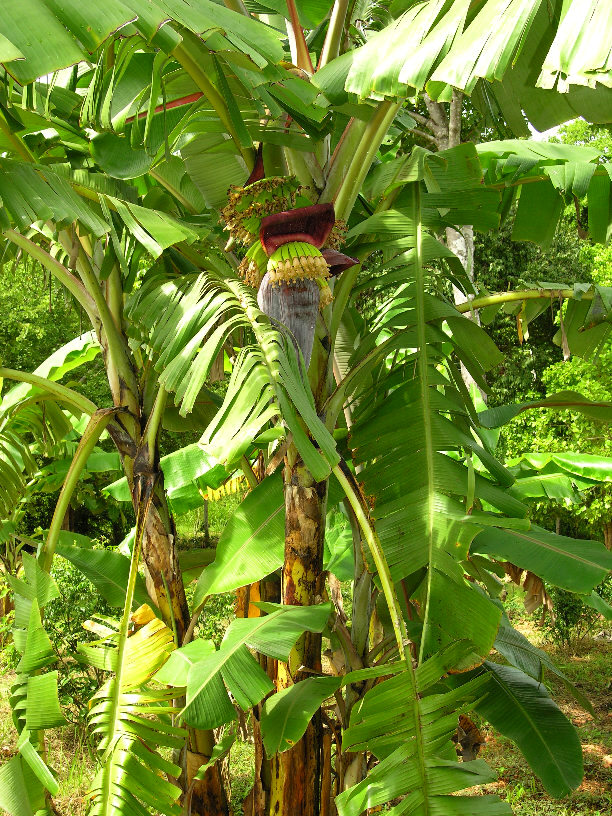 Im Garten wachsen praechtige Bananen Stauden , Mango Baueme viele weitere