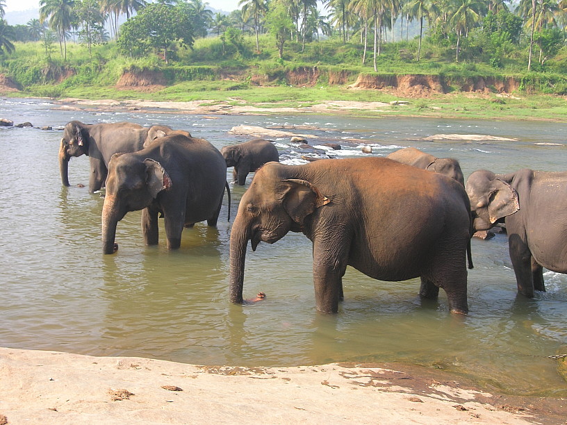 Badende Elefanten in Pinnawela ( Elefantenwaisenhaus )